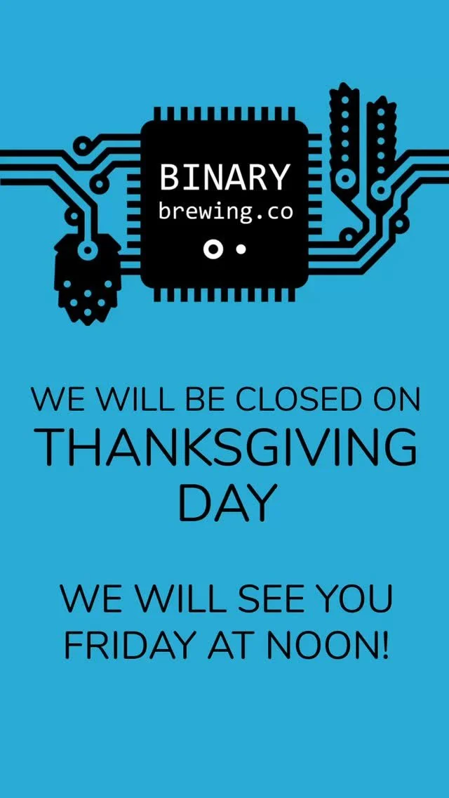 Beer’s better when it’s shared. Give the gift of Binary! Good for anything in the taproom-pints, food, merch, and more.