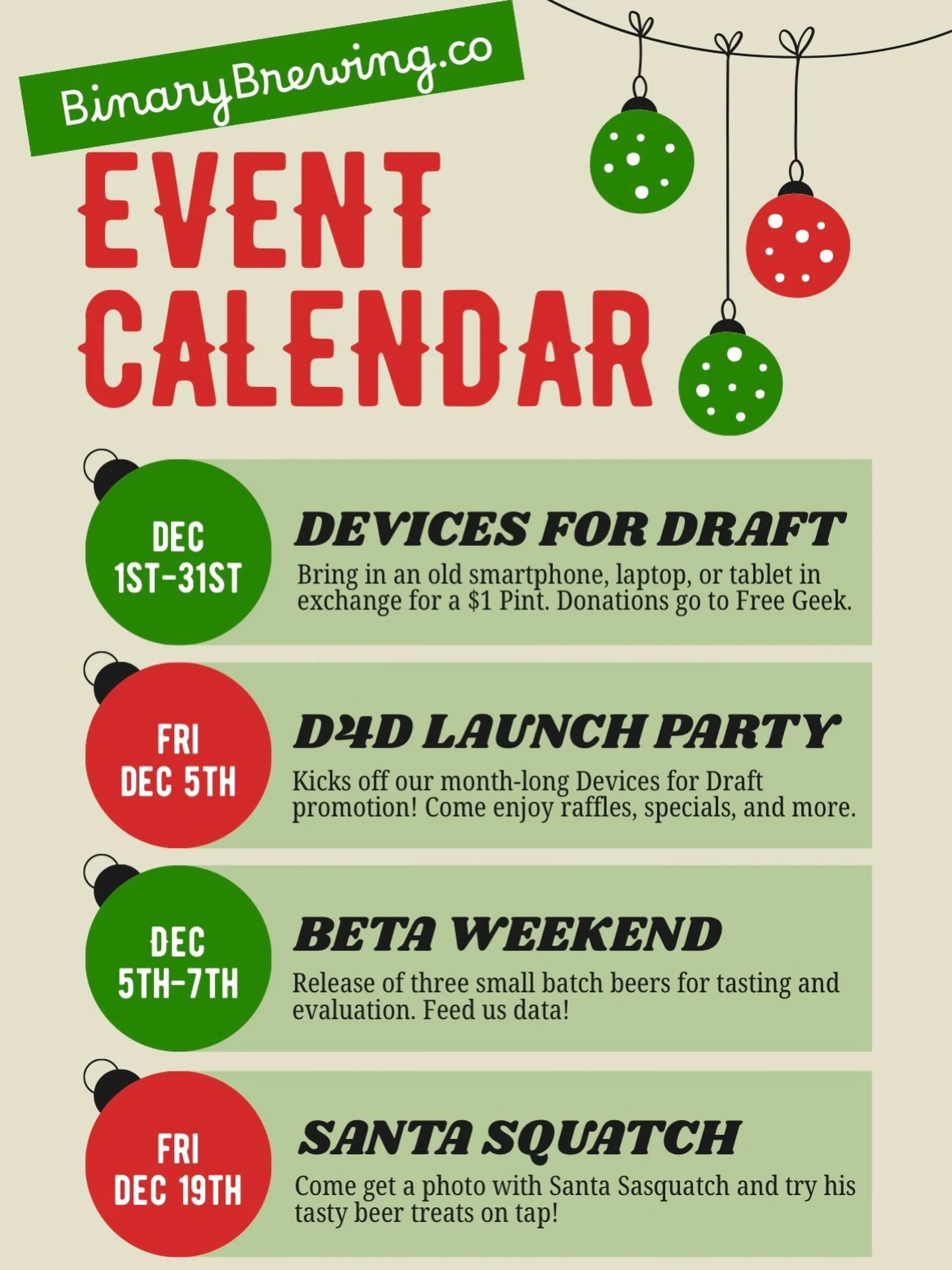 Beer’s better when it’s shared. Give the gift of Binary! Good for anything in the taproom-pints, food, merch, and more.